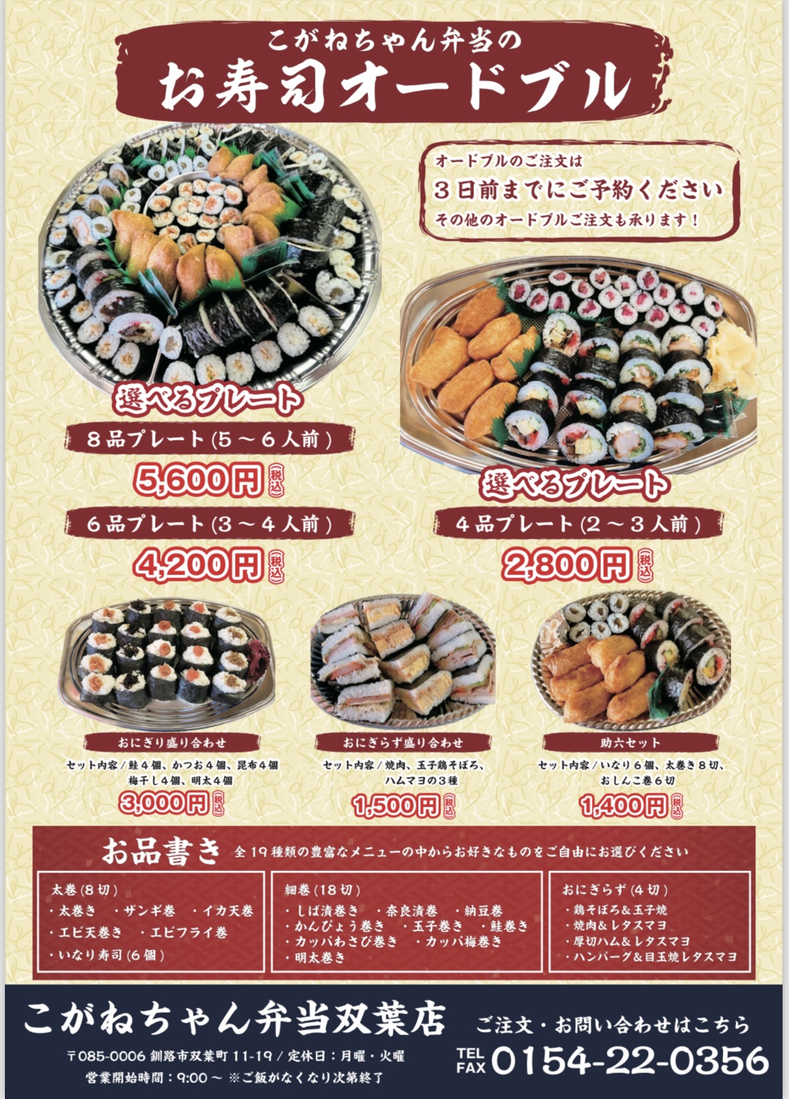 ちょっとだけ巻き寿司を食べたい方、家族ワイワイと大人数で食べたい方、色々なシーンで使えるおにぎりや巻き物のオードブルです。